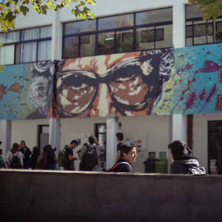 Desde las 14hs en adelante, la organización “Ramón Carrillo” organizó la pintada del mural “Democracia y Derechos Humanos” en la pared externa del aula 7.