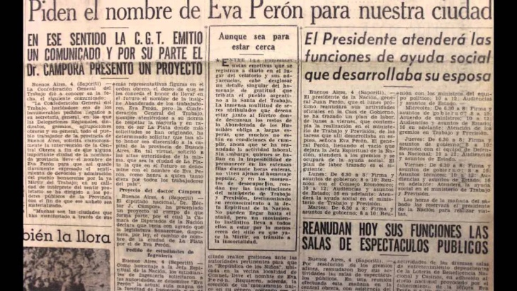 Los referentes políticos de diferentes provincias del país llevaron a la Cámara Legislativa Bonaerense un proyecto de ley, el cual proponía cambiar el nombre de La Plata al de "Eva Perón". En el mismo, fundamentaban su propuesta ya que respondía a la "alta finalidad de traductir el homenaje de la provincia hacia la más preclara de sus hijas, en el doloroso momento de su desaparición material".