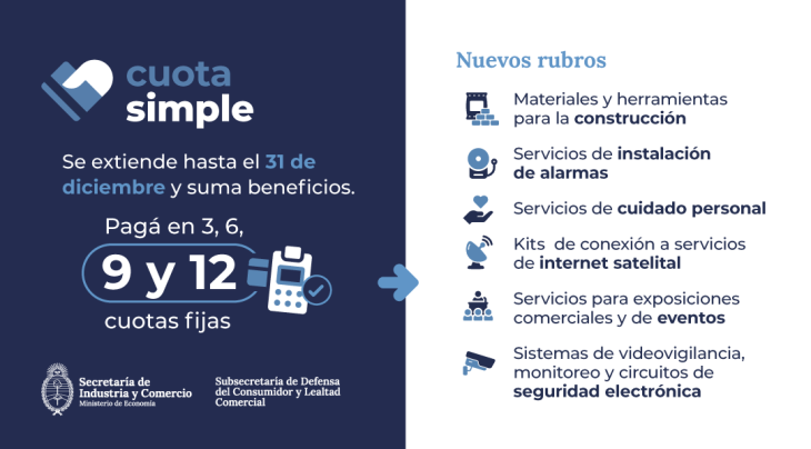 El gobierno extendió el programa Cuota simple hasta fin de año y ahora pasó de 3 y 6 cuotas fijas a 9 y 12 siendo una gran alternativa para reactivar el consumo. Además incorporaron nuevos rubros a la iniciativa.