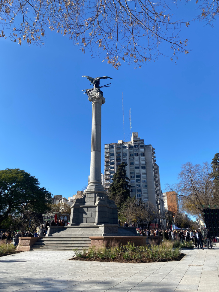 Uno de los hitos más relevantes de esta restauración fue la reubicación del Monumento Alla Fratellanza Italiana en su posición original. Esta escultura, símbolo de la hermandad entre Argentina e Italia, vuelve así a ocupar el centro de la plaza, lo que permitió recuperar el eje de simetría y la geometría patrimonial del conjunto, en diálogo con las diagonales y accesos que convergen en el lugar.