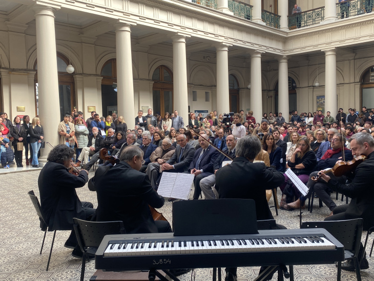 Este martes 12 de agosto, la Universidad Nacional de La Plata celebró sus 120 años de historia con un acto en el patio del Rectorado. La jornada incluyó presentaciones del Coro Universitario, el Cuarteto de Cuerdas y el Quinteto de Vientos de la casa de estudios. Además, se realizó un reconocimiento a los expresidentes de la Universidad en el último período democrático, y el actual presidente, Martín López Armengol, pronunció un discurso conmemorativo.