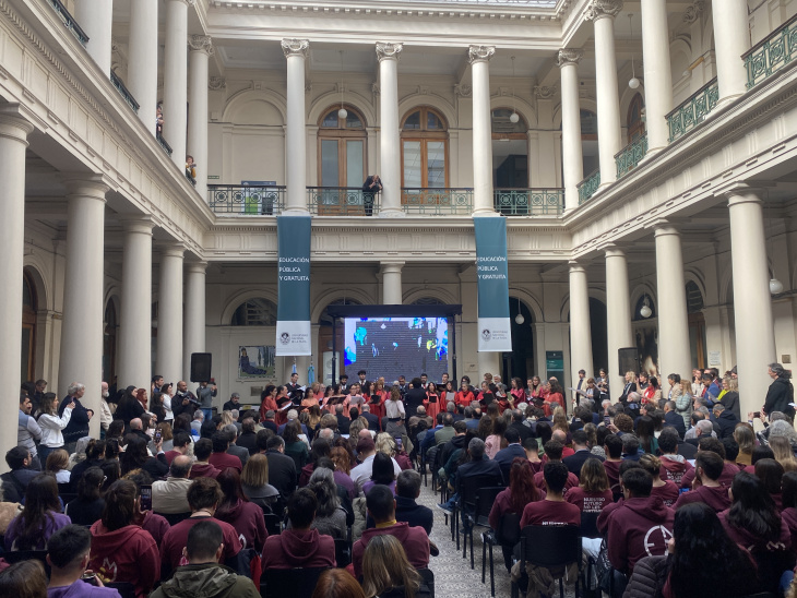 "La última dictadura cívico-militar dejó heridas imborrables. Más de 800 miembros de nuestra comunidad fueron desaparecidos, asesinados, silenciados y exiliados. También resistimos momentos difíciles en la década del 90: políticas de ajuste, mercantilización del saber y tentativa de arancelamiento pusieron a prueba el sistema universitario, pero la comunidad supo defender con firmeza su carácter público, gratuito y democrático".