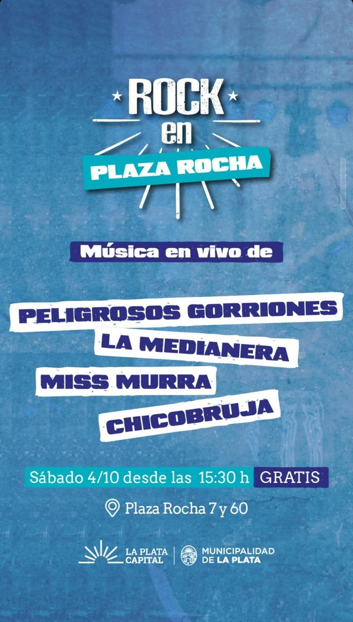 Hoy, en la emblemática Plaza Rocha de La Plata, se llevará a cabo una nueva edición de Rock en Plaza Rocha, un encuentro cultural y musical que promete una tarde cargada de energía y buena música. Desde las 15:30 horas, en la tradicional esquina de 7 y 60, el espacio se transformará en un punto de encuentro para vecinos, vecinas y visitantes que deseen disfrutar de un evento al aire libre, en un día soleado y con un clima ideal para compartir. La propuesta invita tanto a grupos de amigos como a quienes se acerquen de manera individual, con el objetivo de vivir una experiencia donde la música y la comunidad se combinan en un entorno urbano y festivo.