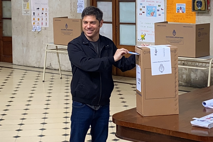 Axel Kicillof, gobernador de la provincia, emitió su voto en la ciudad de La Plata en la Escuela Escuela Superior de Formación en Salud, a metros de la Casa de Gobierno donde reside. Como es habitual, llegó acompañado de su esposa Soledad Quereilhac y luego de haber votado habló con los medios presentes en el Teatro Metro.