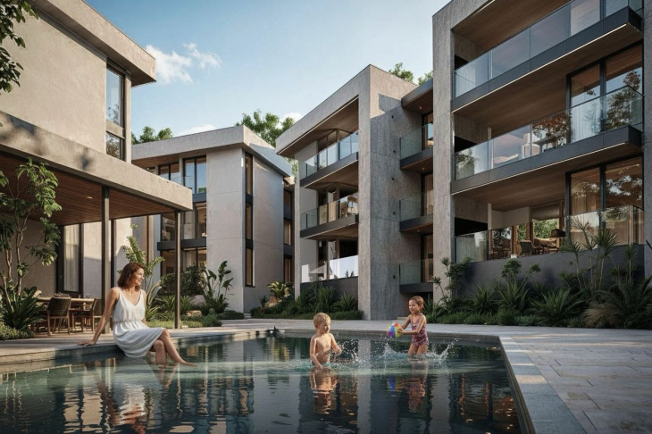 Fiel al estilo Yacoub, el desarrollo incluye una piscina con solárium rodeada de vegetación autóctona y un SUM en planta baja para eventos y reuniones sociales. Cada espacio fue concebido para fomentar el descanso, la comunidad y la privacidad, con el confort característico de la línea Yacoub Signature.