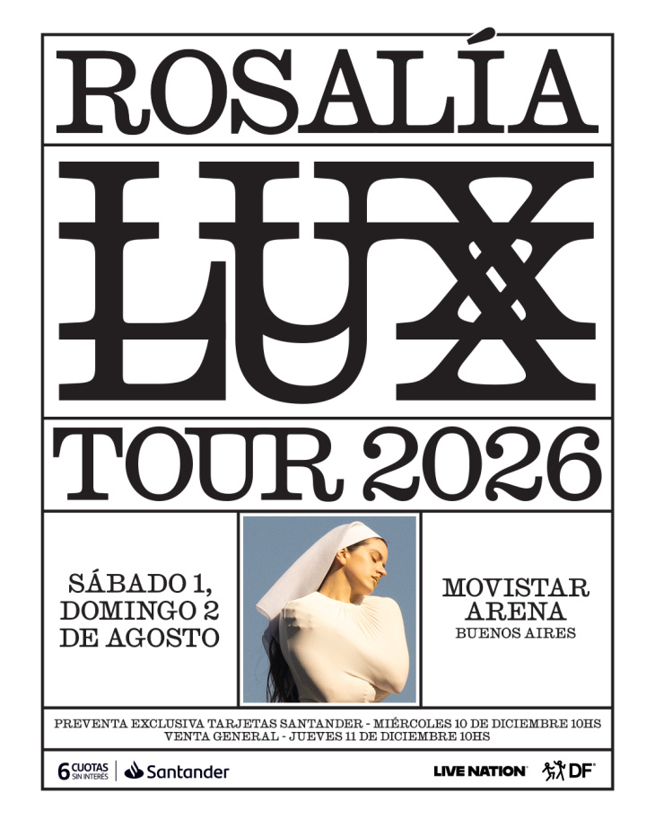 El anuncio de estos shows llega después de una visita relámpago de Rosalía a Buenos Aires, donde profundizó su vínculo con la ciudad y la cultura local: pasó por programas como “Un día perdido” (Mario Pergolini), Luzu TV, compartió salidas con Lali y Emilia Mernes, visitó La Bombonera con Trueno y Momo y se reunió con Charly García.