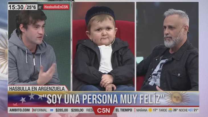Hoy visitó los estudios de c5n, más puntualmente en el programa “Argenzuela” de Jorge Rial. Hasbulla habló del show que tendrá hoy en el Gran Rex donde dejó en claro que más allá de no haber conocido aún el teatro “No tengo miedo ni estoy nervioso”. Será el primer espectáculo que brinda, y se espera una gran cantidad de espectadores yendo a ver al personaje ruso.