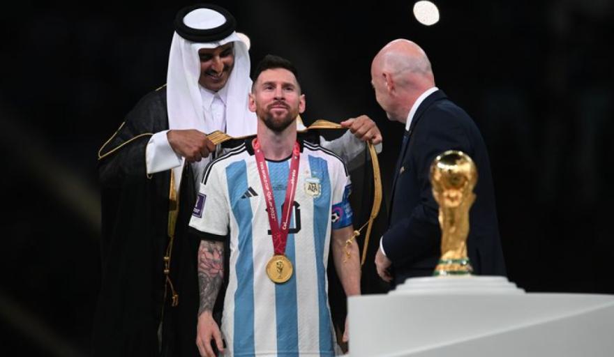 El presidente de la FIFA, Gianni Infantino, y el actual emir de Qatar, el jeque Tamim bin Hamad Al Thani, le pusieron una túnica denominada como “Bisht” o “Beshth” y forma parte de la cultura qatarí y del mundo árabe. ¿Qué significado tiene esta vestimenta?