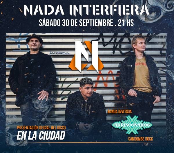 También el sábado 30, el grupo de pop/rock y folk/rock, Nada Interfiera, se va a presentar a las 21 horas en el Teatro Metro, ubicado en 4 entre 51 y 53. "Por primera vez nos presentamos en el Teatro Metro para recorrer todas nuestras canciones en una noche única, donde estaremos acompanñados de la banda invitada Arrinconados con su fusión de candombe y rock", anunciaron hace poco. Las entradas cuestan $3.000 y se pueden adquirir a través de este link.