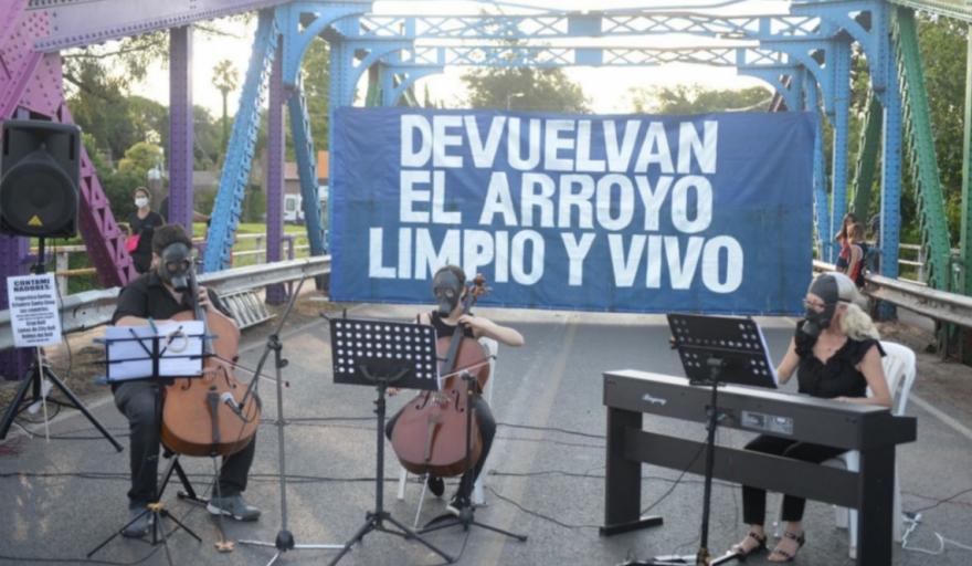 La protesta se realizó sobre el denominado "Puente Venecia" a la altura de la calle 481, donde con intervenciones artísticas vecinos autoconvocados piden que se deje de contaminar el arroyo.