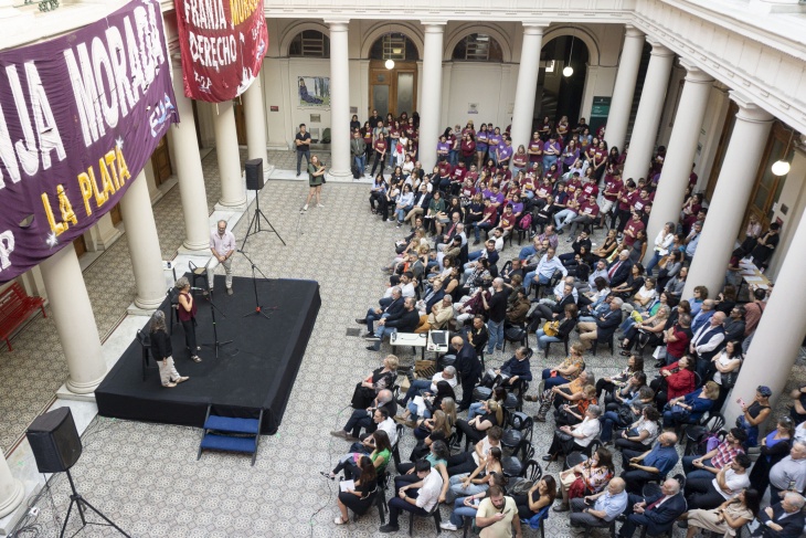 Lorente destacó la presencia de diversas agrupaciones estudiantiles en el Patio del Rectorado: "Es sumamente valioso, sobre todo si tenemos en cuenta que uno de los anhelos de Karakachoff, era la unidad del campo popular”.