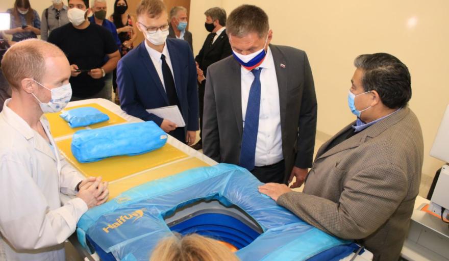 Con el intendente Ishii como anfitrión, el embajador Feoktistov recorrió las instalaciones del Hospital Oncológico y la Facultad de Medicina de la Universidad de José C. Paz (UNPAZ), que está próxima a inaugurarse. También hubo intercambio de regalos protocolares entre ambos funcionarios.