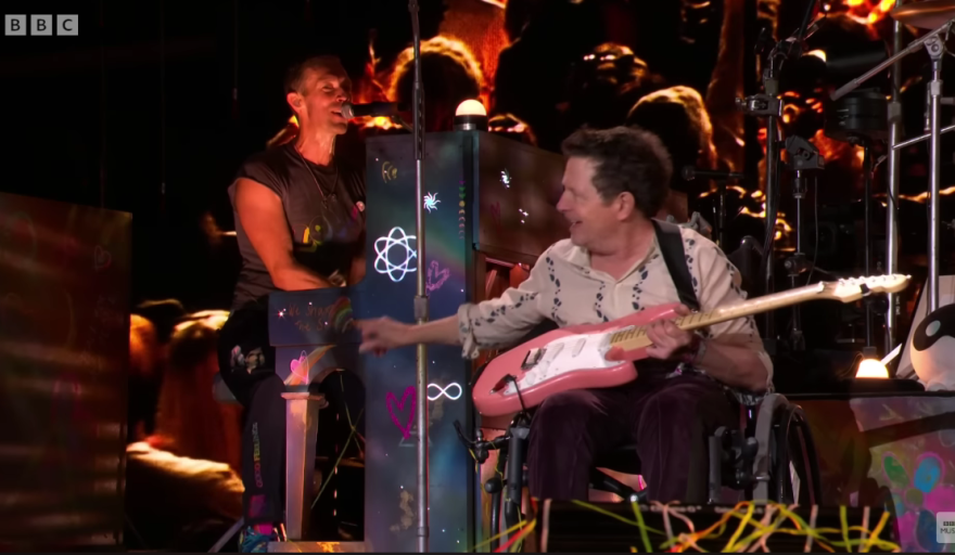 El actor de 63 años tiene Parkinson en estado avanzado y cuenta con movilidad reducida. Sin embargo se subió al escenario para acompañar a la banda británica con dos de sus clásicos: “Fix You” y “Humankind”. Chris Martin, el vocalista de Coldplay anunció su presencia ante un público que no lo esperaba: "Con su riff de Chuck Berry y el estilo de golpe de Biff: damas y caballeros, denle la bienvenida a Michael J. Fox", dijo Martin por el micrófono, haciendo referencia a dos recordadas escenas de la primera de las películas.