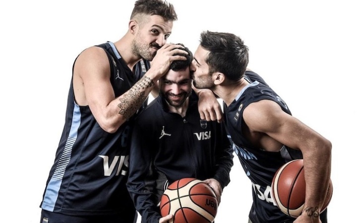 Facundo Campazzo y Nicolás Laprovittola besan a Gercho. Foto: Prensa CAB