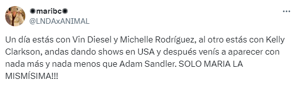 Tras ser entrevistada en The Kelly Clarkson Show en Nueva York y sorprender a todos con su inglés fluido, María Becerra mantuvo su estadía en una de las ciudades de Estados Unidos y se topó con el actor Adam Sandler, un ícono de las comedias.