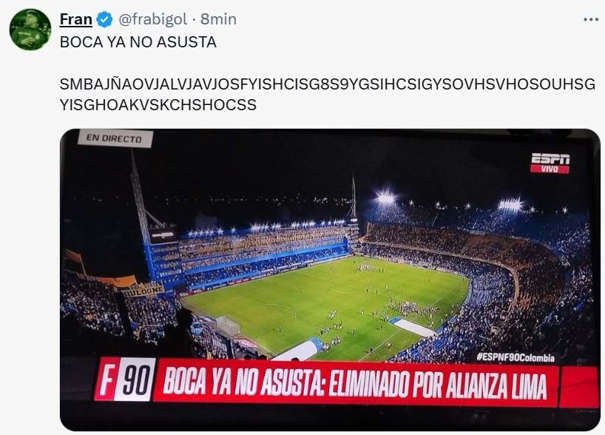 Este martes Boca quedó eliminado de la Fase 2 de la Copa Libertadores, tras perder 5-4 en los penales frente Alianza Lima en la Bombonera, luego de haber empatadado 2-2 en el global. Con este resultado el Xeneize tampoco disputará la Copa Sudamericana y estallaron los memes en redes sociales.