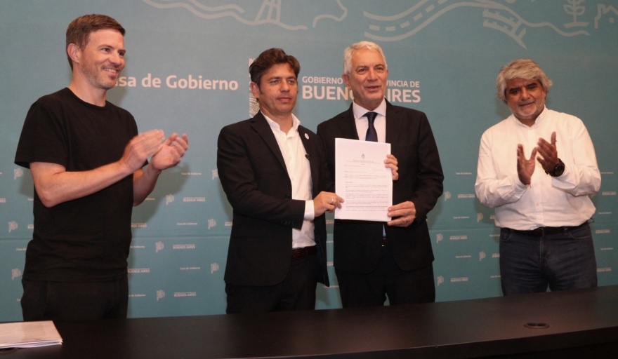 También participaron de la rúbrica el ministro de Producción, Ciencia e Innovación Tecnológica bonaerense, Augusto Costa; su par de la cartera provincial de Trabajo, Walter Correa; y el director ejecutivo de ARBA, Cristian Girard.