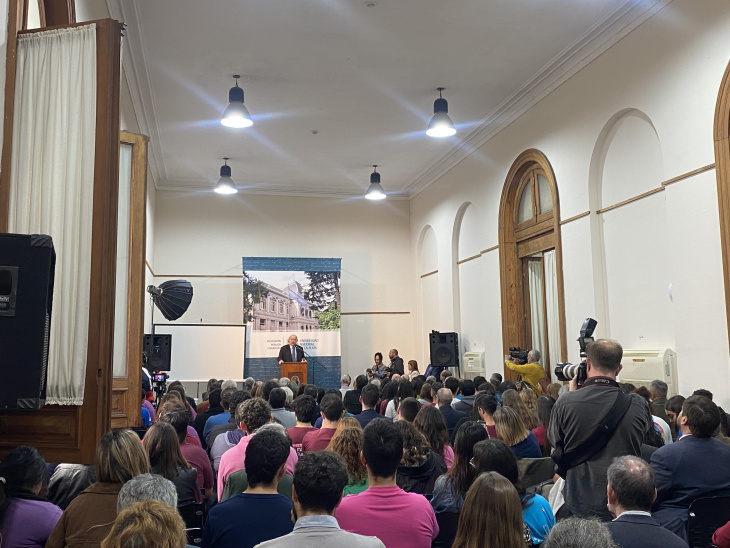 Luego de una breve presentación del actual presidente Martín López Armengol, Tauber tomó la palabra para realizar el anuncio de lo que será su tercer período al frente de la universidad a partir del 2026. Frente a las más de 180 personas presentes en la sala, repasó los logros desde su primera gestión y los hechos que llevaron a lograr los consensos necesarios para la continuidad de su proyecto.