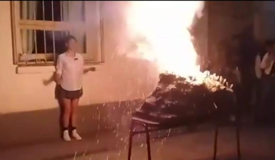 El hecho ocurrió en el Instituto Comercial de Rancagua y fue captado por los celulares de los presentes. En los videos se observa cómo una llama surge del volcán y, segundos después, se produce una fuerte explosión que genera pánico entre los asistentes.