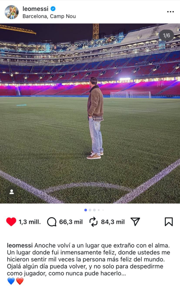 “Anoche volví a un lugar que extraño con el alma. Un lugar donde fui inmensamente feliz, donde ustedes me hicieron sentir mil veces la persona más feliz del mundo. Ojalá algún día pueda volver, y no solo para despedirme como jugador, como nunca pude hacerlo”, escribió el capitán de la Selección Argentina.