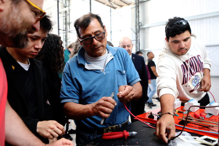 Durante la recorrida, el vicepresidente Académico Fernando Tauber visitó el predio para interiorizarse sobre los avances y acompañar la práctica profesionalizante de estudiantes del curso de electricidad de la Escuela Universitaria de Oficios, quienes trabajan en la instalación eléctrica junto a equipos Nodocentes. También observó la muestra final del Curso de Pastelería Nivel III.