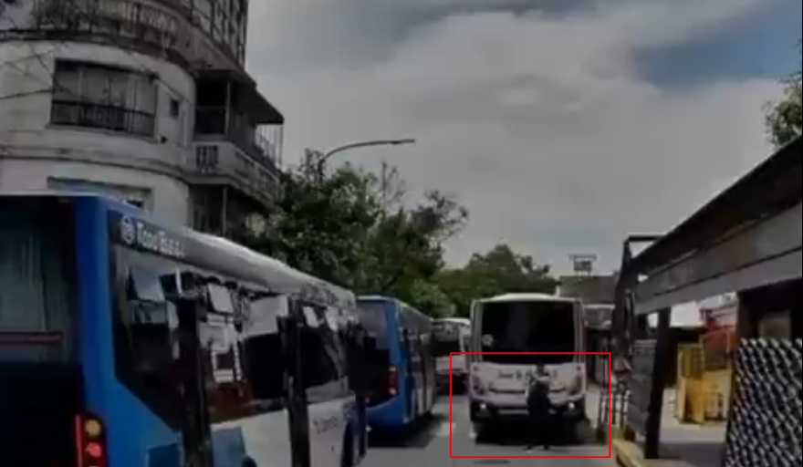 Inmediatamente el hombre se da vuelta y comienza a golpear el paragolpe del bus con vehemencia para que el mismo frenara y no siguiera avanzando pudiendo generarle lesiones de gravedad. Para su suerte y la tranquilidad de todos, el inspector no sufrió ninguna herida, más allá del golpe y el susto.