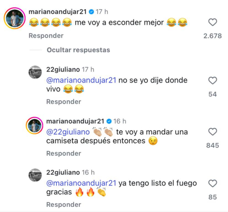 Lejos de cualquier tono confrontativo, el exarquero respondió con ironía: “Me voy a esconder mejor”, en un mensaje acompañado con emojis de risas y que desató reacciones humorísticas entre hinchas.