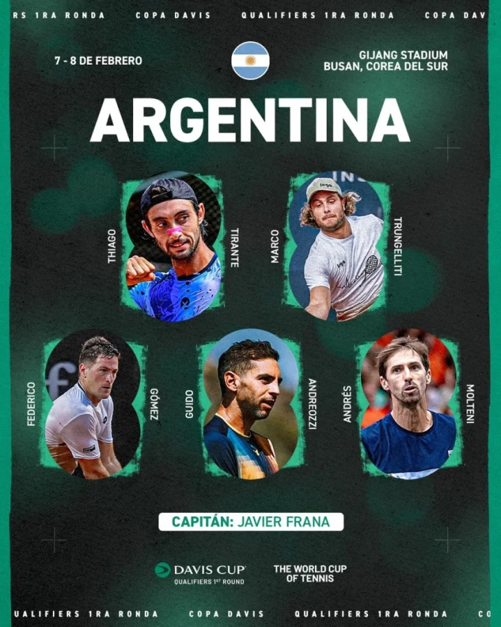 Pese a las dificultades, Frana destacó el valor deportivo y simbólico de la nómina. “Nos entusiasma tener cuatro jugadores debutando, que dijeron que sí por su generosidad y convicción. Vamos a Corea a dar lo mejor y demostrar que el tenis argentino es mucho más grande que los cinco mejores del ranking”, expresó el capitán tras el anuncio.