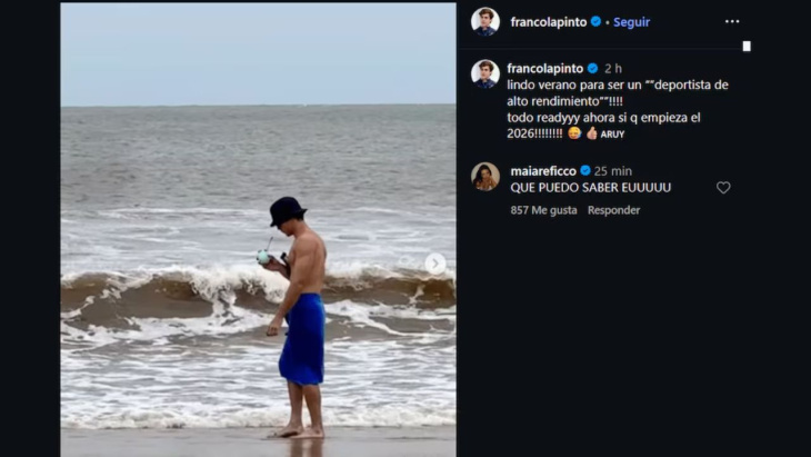 El posteo del piloto argentino estuvo acompañado por una frase sugestiva: “Lindo verano para ser un deportista de alto rendimiento”. Días antes, Reficco había publicado una serie de fotos con una descripción casi idéntica, lo que fue interpretado como un guiño entre ambos. A eso se sumaron los likes cruzados y comentarios cómplices, que alimentaron aún más los rumores de una posible relación entre el deportista y la actriz.