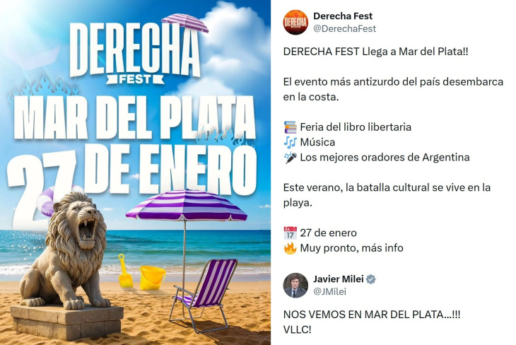 El martes, la agenda se trasladará al Horizonte Club de Playa para una nueva edición de la Derecha Fest a partir de las 19:30