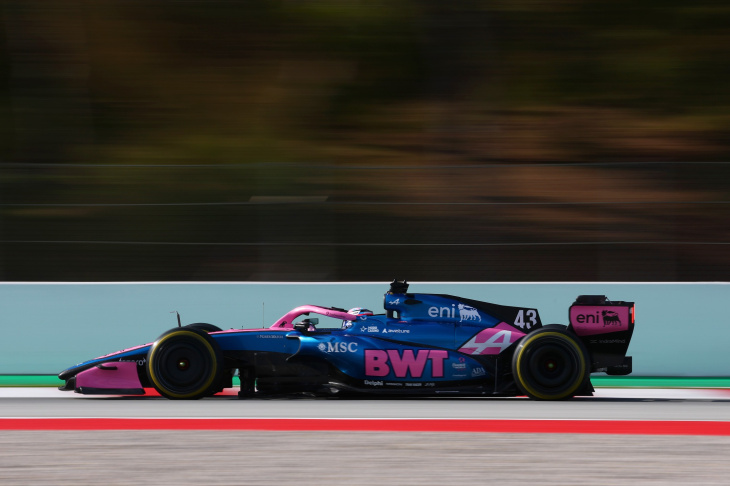 Una de las primeras imágenes del A526 en Barcelona siendo conducido por Franco Colapinto.
