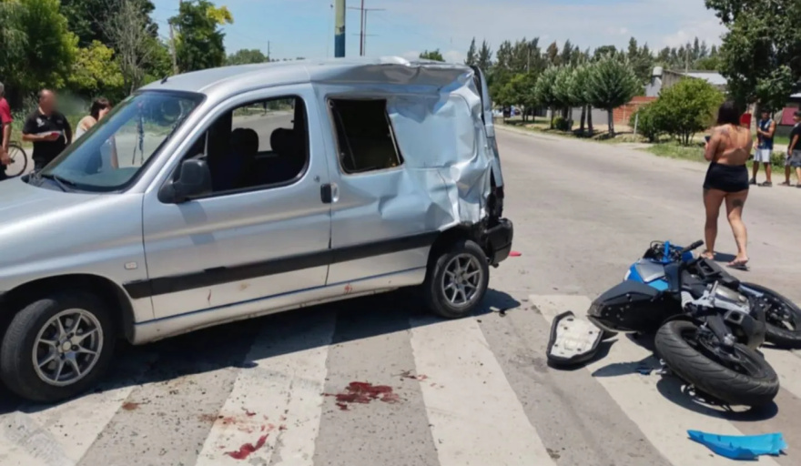 El accidente se produjo cuando una motocicleta de alta cilindrada y una camioneta Peugeot Partner gris colisionaron por motivos que aún se investigan. A raíz del choque, el conductor de la moto fue asistido en el lugar por personal médico y derivado de inmediato al centro de salud.