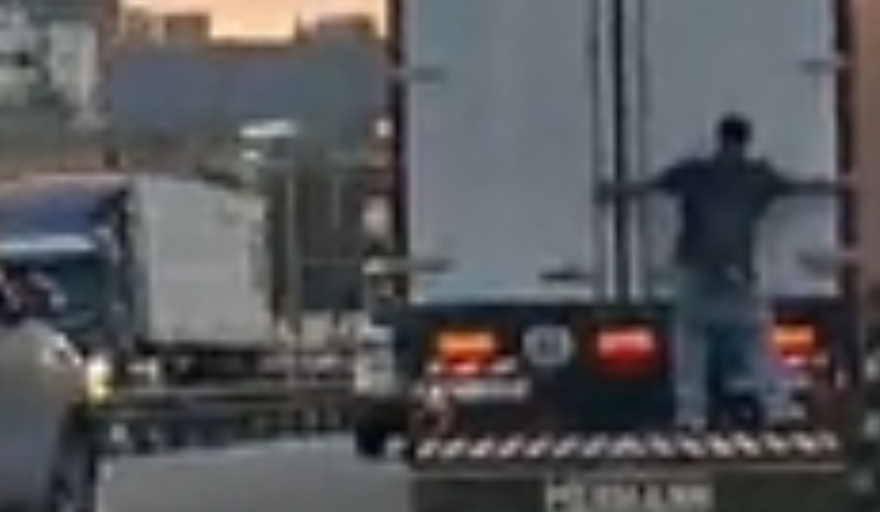 #CABA Un joven fue visto colgado de la parte trasera de un camión en la Autopista 25 de Mayo y generó temor entre los otros automovilistas, quienes algunos grabaron el insólito accionar.