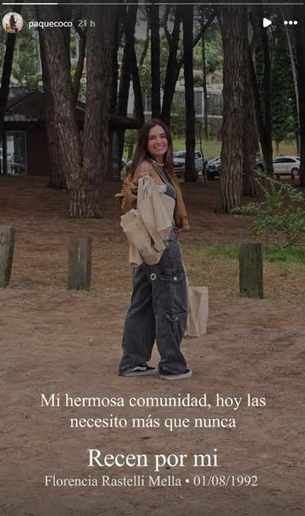 Florencia es oriunda de Olivos, pero es muy conocida en La Plata por su actividad profesional y su emprendimiento Paque & Cocó, que cuenta con una amplia comunidad en redes sociales. Desde esa cuenta se publicó un mensaje que conmovió a sus seguidores: “Mi hermosa comunidad; hoy las necesito más que nunca. Recen por mí”.