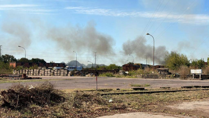 Dos dotaciones de bomberos trabajaron intensamente para contener el avance de las llamas y evitar que alcanzaran los galpones del predio ferroviario. Dentro del amplio terreno, de casi 49 hectáreas, el fuego consumió pastizales, cubiertas y durmientes de madera. La mayor preocupación era que el foco se propagara hacia los vagones, estructuras internas y una antena instalada en el lugar.
