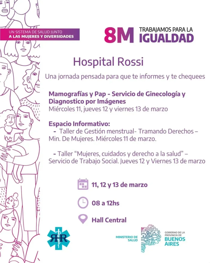 El Hospital Rossi realizará chequeos ginecológicos gratuitos en el marco de la semana del Día Internacional de la Mujer. La iniciativa incluirá estudios de prevención como mamografías y pruebas de Papanicolaou (Pap), además de actividades informativas sobre salud y cuidados.