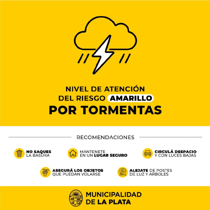 Para seguir la evolución del clima en tiempo real, está disponible la cuenta de X “ClimaMLP”. En caso de emergencias, se puede llamar al 911, mientras que para situaciones médicas en la vía pública está habilitada la línea 107 del SAME La Plata.