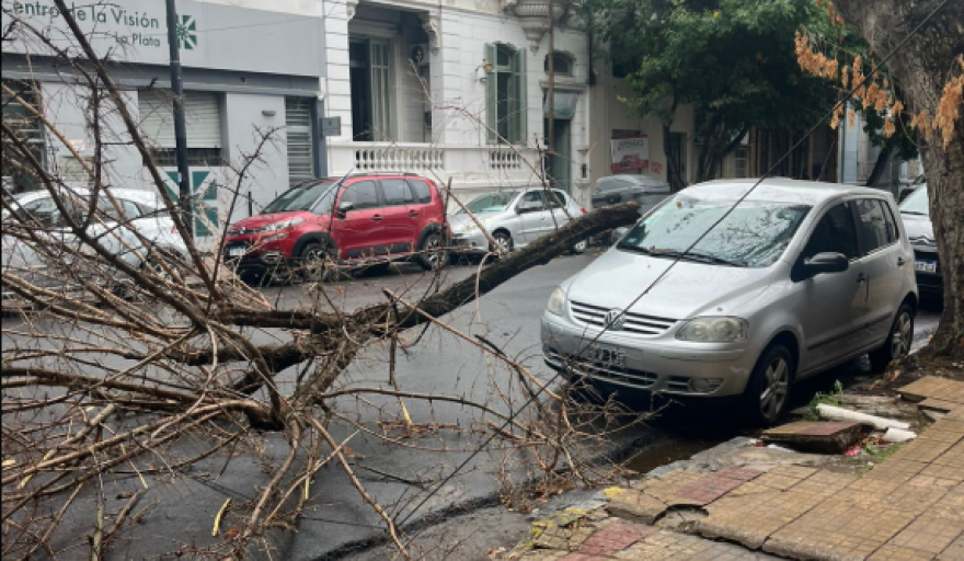Uno de los mayores problemas fue la caída de ramas de árboles que se encontraban sueltas o flojas, tal como ocurrió en la zona de 2 entre 46 y 47 donde una rama de tamaño considerable impactó sobre un auto estacionado Volkswagen Fox gris y produjo lesiones de consideración en el techo y parabrisas del rodado.