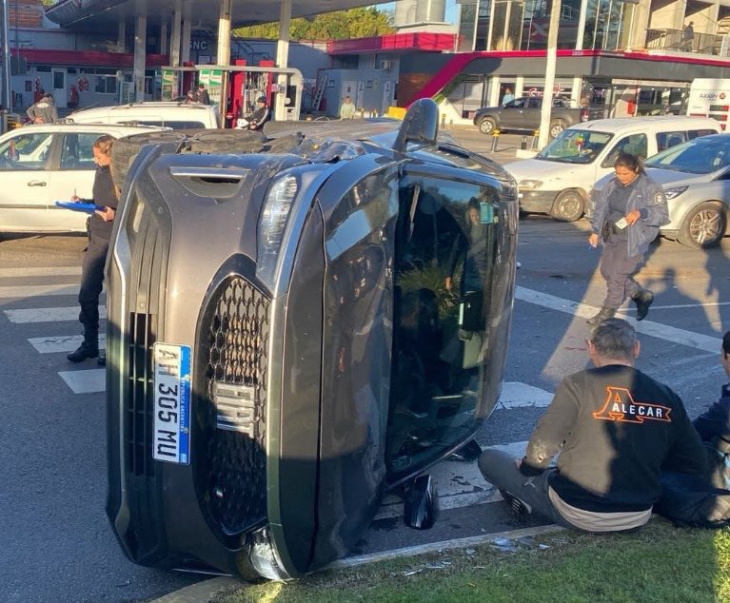 Los ocupantes del vehículo volcado, en tanto, debieron ser ayudados por personas que se encontraban en una estación de servicio cercana, ya que el habitáculo había quedado comprometido tras el impacto.