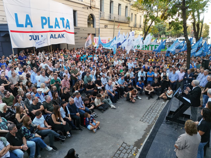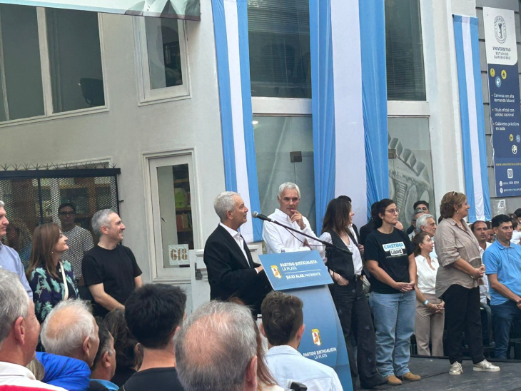 El discurso también incluyó fuertes críticas al gobierno nacional. “Tenemos que cambiar este modelo liberal conservador por un modelo político no subordinado servilmente a las potencias extranjeras”, afirmó, y advirtió sobre el impacto económico en la provincia de Buenos Aires, con cierre de empresas, caída del empleo y del consumo.