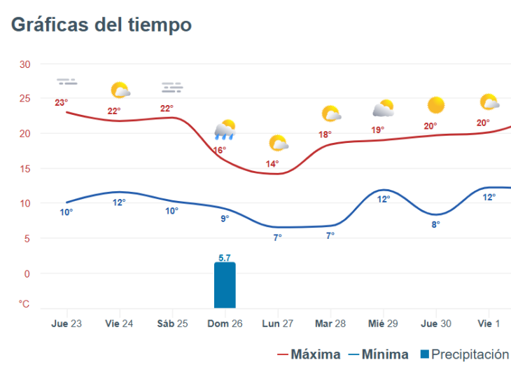 Según el pronóstico, el martes mantendrá mínimas de 7°C, mientras que la máxima apenas superarán los 15°C. El miércoles con una baja amplitud térmica aumentará levemente la temperatura hasta los 12°C de mínima y 19°C de máxima. A pesar del ingreso de aire frío, el tiempo se mantendrá estable, con cielo parcialmente nublado y sin probabilidades de lluvias o chaparrones en la región.