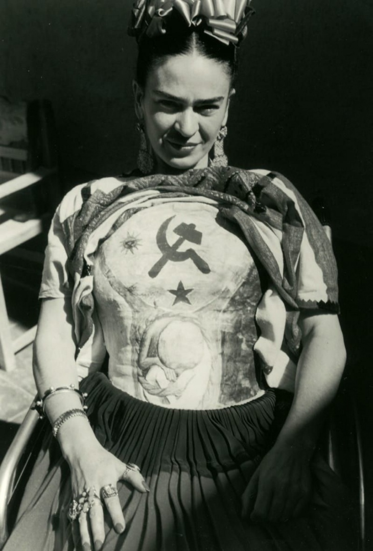 Frida poco despúes de pintar su propio corset