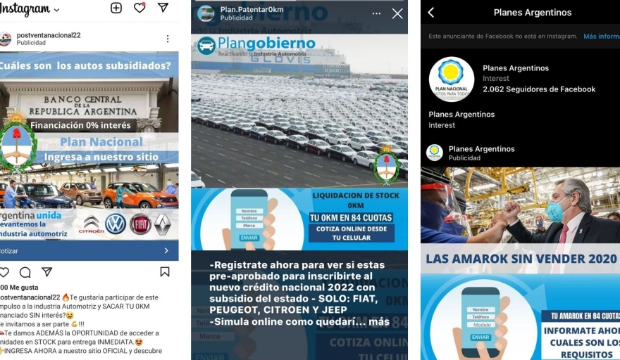 "De la investigación efectuada se constató que el engaño en estas publicidades es manifiesto y grosero, haciendo uso de montaje de imágenes notoriamente falsas y brindando información que induce a la confusión, con denominación de planes y programas apócrifos o que existieron en su oportunidad y que se encuentran finalizados hace varios años", se planteó.