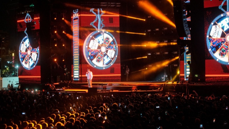 Luego de la gran entrada, Ysy A señaló a las pantallas y dejó en manos del “azar” el resto del repertorio con una ruleta que rotaba entre sus cuatro discos: “Antezana 247”, “Hecho A Mano”, “Mordiendo el bozal” y “Trap de Verdad”.